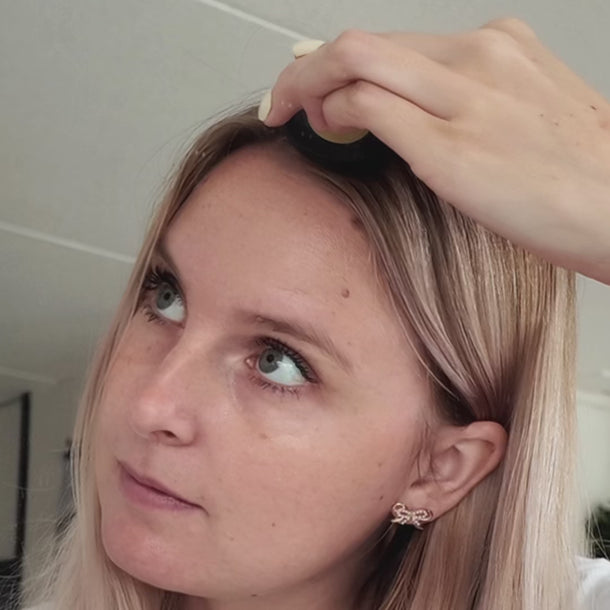 1. Zorg voor droog haar: gebruik de concealer altijd op schoon, droog haar voor het beste resultaat.